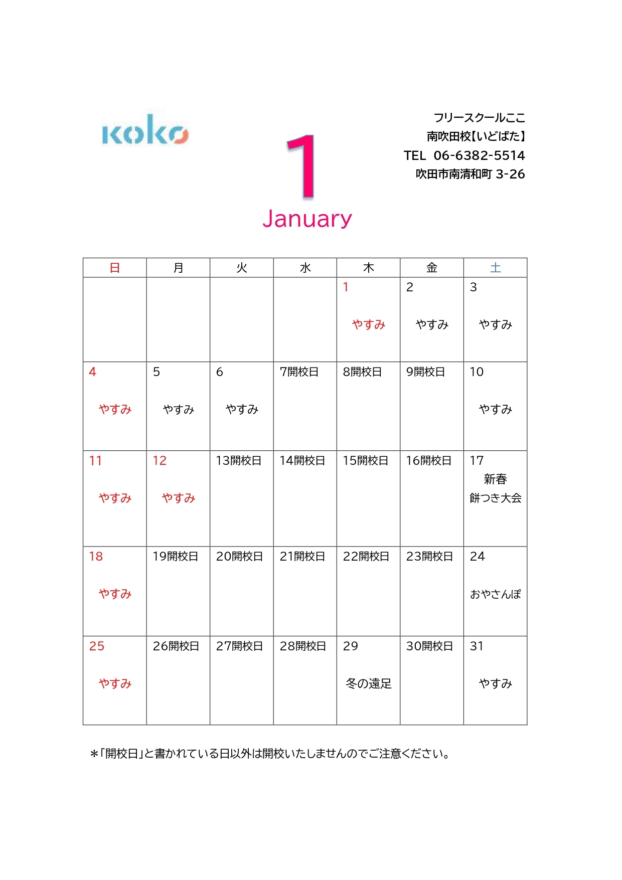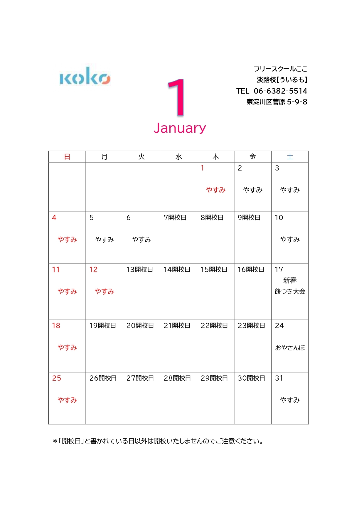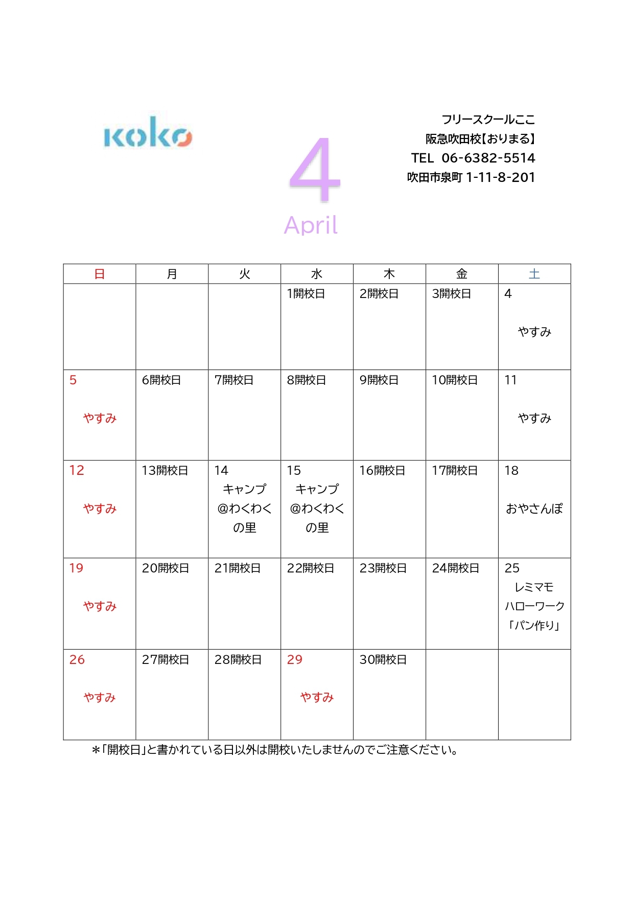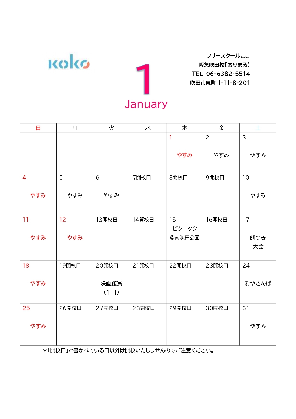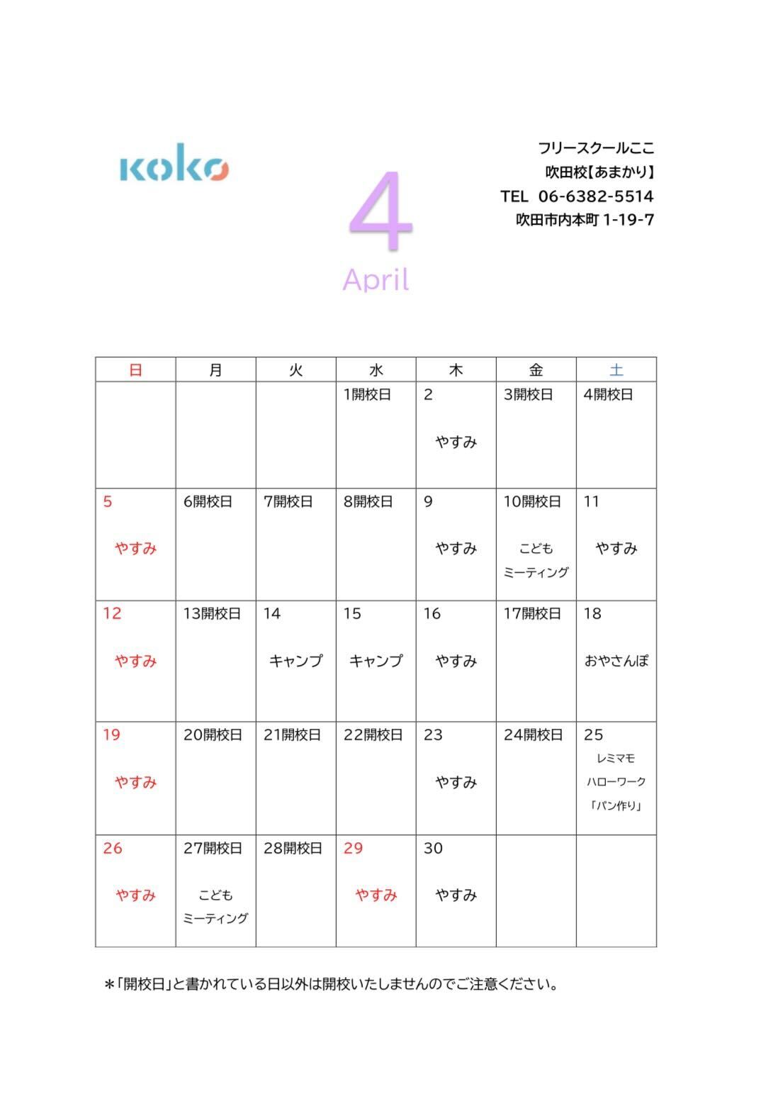 今月のスケジュール